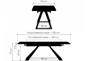 Длина в разложенном виде: 2200 мм