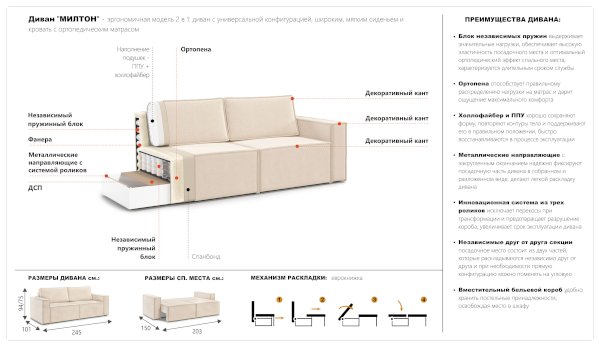 Диван Милтон (Империал) продается в интернет-магазине mebel-online-naberezhnye-chelny.ru по цене 60 770 руб. Есть доставка по Набережным Челнам и Республике Татарстан. Возможность подъема на этаж и сборки уточняйте у менеджера по телефону 8(800)505-27-11.